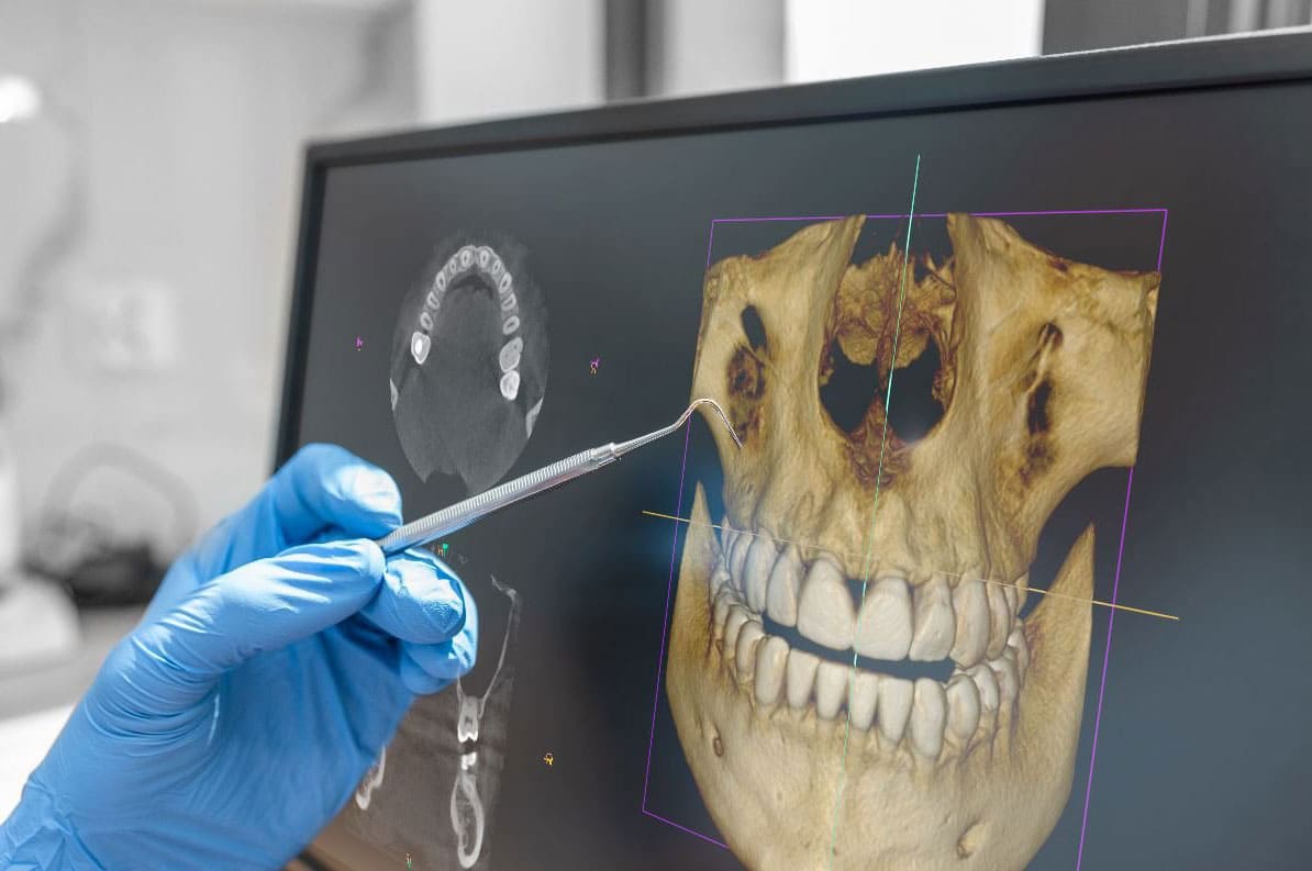 X-ışını ile istenilen bölgenin kesitsel görüntüsünün elde edildiği bir radyolojik yöntemdir. Klasik diş röntgeninden en önemli farkı dental tomografinin 3 boyutlu görüntü sağlamasıdır. Bu da uzunluk, genişlik ve derinlik de dahil üç boyutlu görüntüleme, tüm dişlerin, çene kemiğinin ve hava yolunun etrafını görebilme imkanı verir. Dental BT’de düşük doz radyasyon kullanır. Taramadan sonra hastanın vücudunda radyasyon kalmaz.